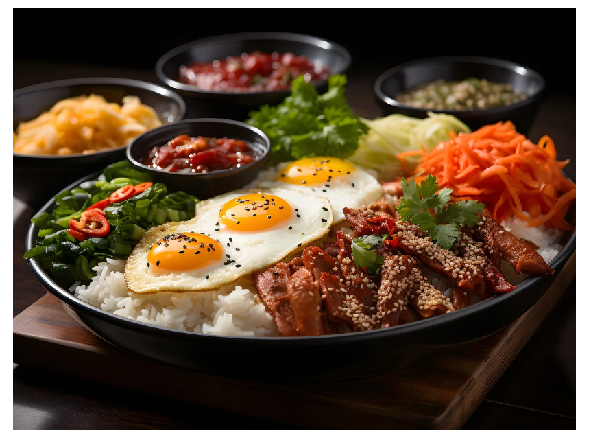 비빔밥(Bibimbap)은 한국을 대표하는 전통 음식으로, 신선한 채소, 고기, 계란, 고추장 소스를 밥과 함께 비벼 먹는 건강한 한 끼입니다.